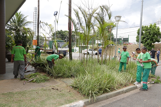 A ação contou com cerca de 20 homens, divididos entre as Secretarias de Meio Ambiente e de Serviços e Obras. Cada detalhe foi fundamental para manter o paisagismo e o colorido das plantas, como dianelas, moreias amarelas, bromélias, palmeiras e lÃrios - que são extremamente resistentes a climas adversos -, bem como a beleza e estética do Teatro.