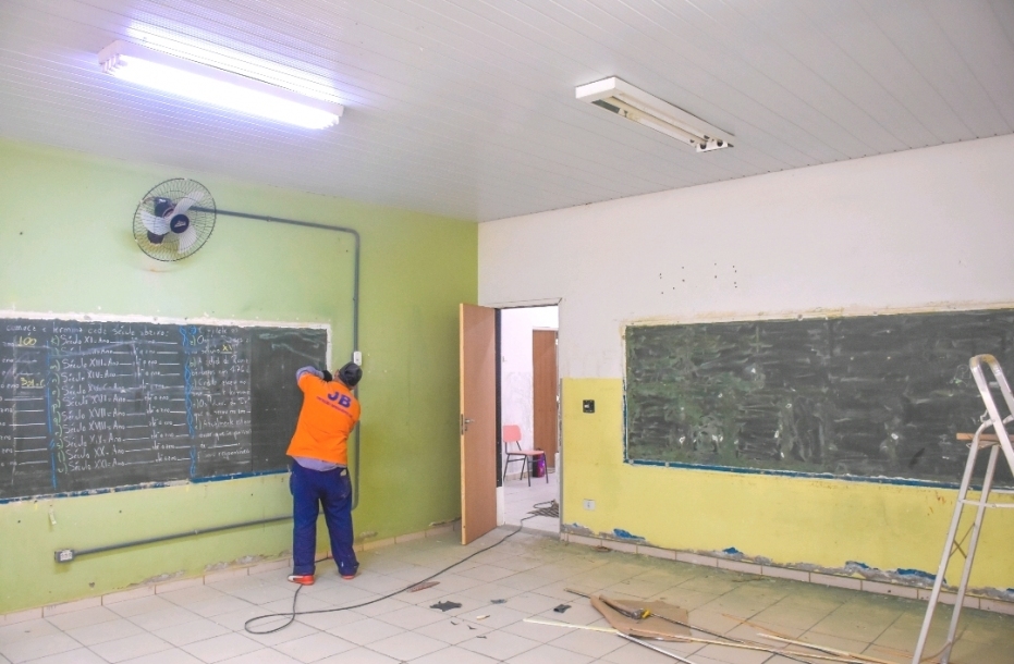 Está em andamento o serviço de manutenção em todas as salas, área externa e na quadra poliesportiva